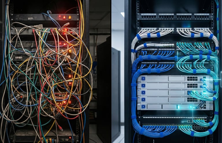 Nuestra diferencia clave: Al finalizar, usted recibe los planos, diagramas de topología y credenciales. Usted es dueño total de su red.